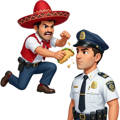 Angry Hispanic man wearing a sombrero jumping over a fence mashing a taco in the face of a border patrol officer emoji