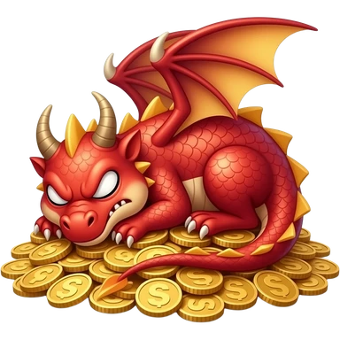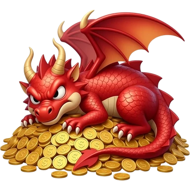 angry red dragon sleeping on a mount of coins emoji