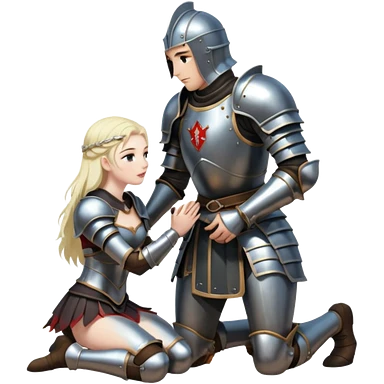 Armored knight kneeling before dark enchantress, erotic power shift emoji