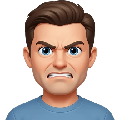 masculine white guy with brown characteristics (french crop) as hairstyle short hair brown eyes and thick eyebrows with a slit in the eyebrows. wearing a black shirt and having slightly angry expression but at the same time taking it as love emoji