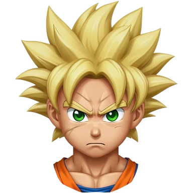 Goku getting angry blond hair green eyes. The top of his forehead is red with veins. emoji