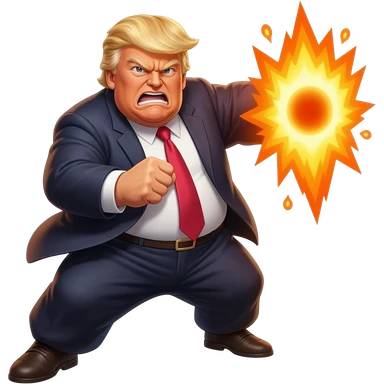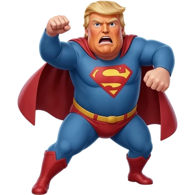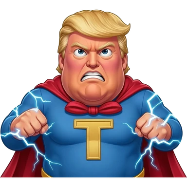 an angry old and fat President Donald Trump in a realistic style, even more realistic and not cartoonist at all, make it un flatering, real life photo, powering up for a super hero attack emoji