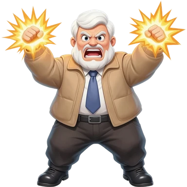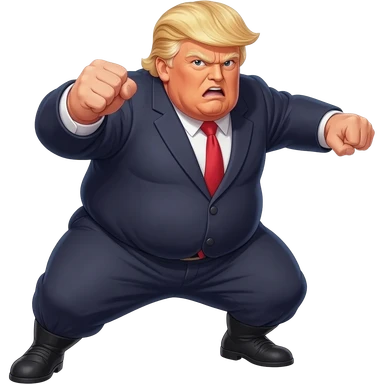 an angry very old and very fat President Donald Trump in a realistic style, even more realistic and not cartoonist at all, make it un flatering, real life photo, powering up for a dragon ball attack, full body, photo realism, very angry in a photo realistic style emoji