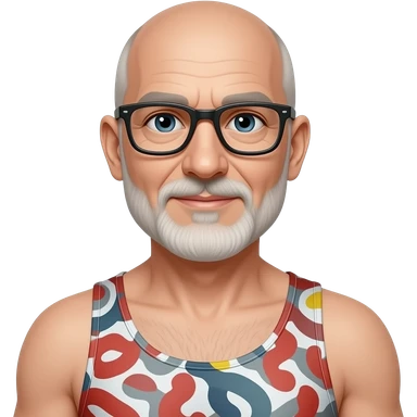 Standing older guy with glasses balding goatee beard bikini shorts emoji