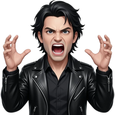 Angry screaming gothic dark haired man in leather clothesthrowing tantrum emoji