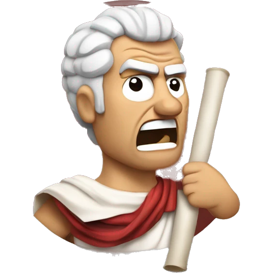 Angry Senator: A Roman senator in a toga, holding a torn scroll, face red with rage, eyebrows furrowed, expressing fury, like he's frustrated with a law or vote emoji | AI Emoji Generator