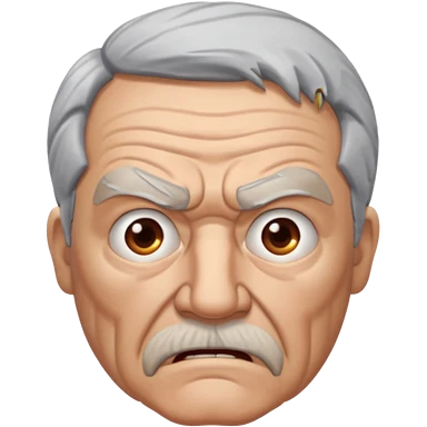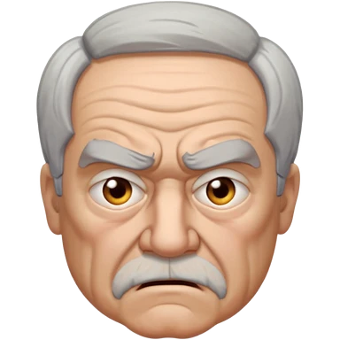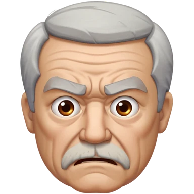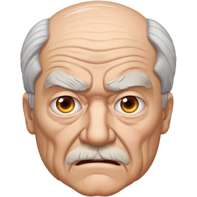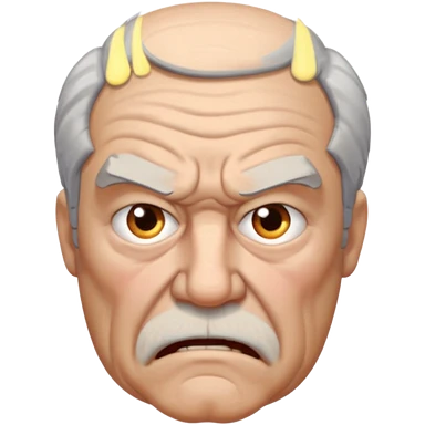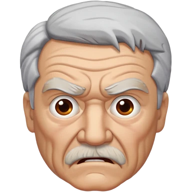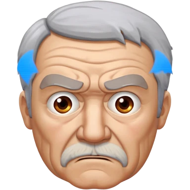 fuzzy blue ball with green eyes smiling with angry dark red eyebrows emoji