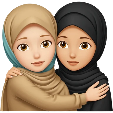 white skinned girl with hijab hugging tan girl with peekaboo hair emoji