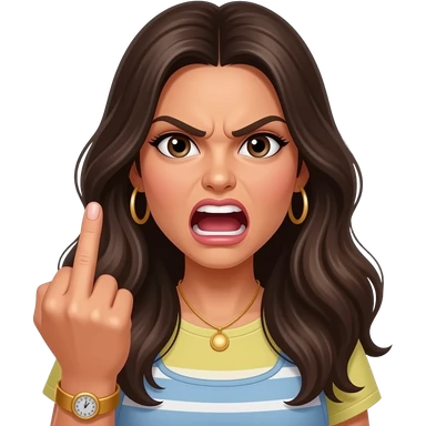 Very Angry pretty latina cussing with long hair and sticking up her middle finger emoji