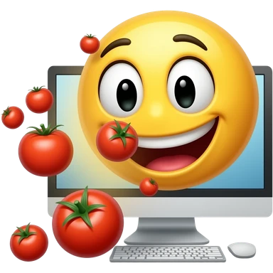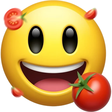 Yellow smiley throwing tomatoes towards screen in a mean way like bashing someone emoji