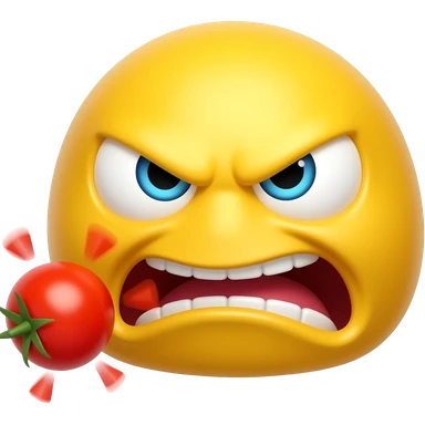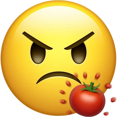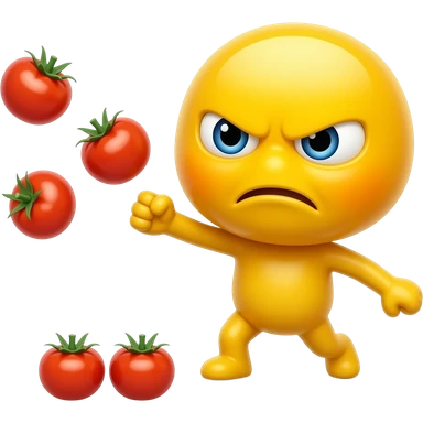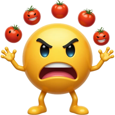 Angry yellow smiley throwing tomatoes at you like they're booing you emoji | AI Emoji Generator