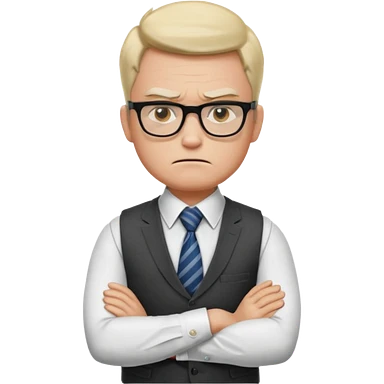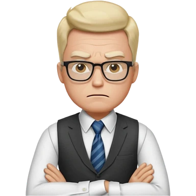 Frowns with Glasses, Strict Teacher: Man with square glasses, vest and tie, arms crossed, angry face emoji