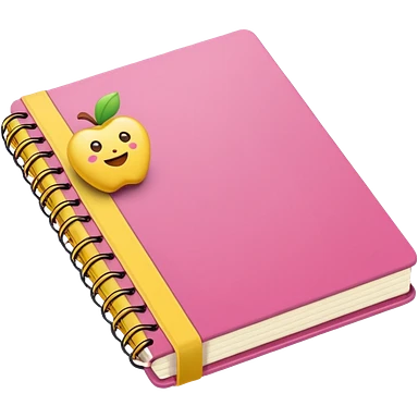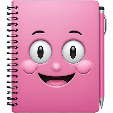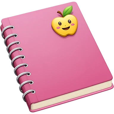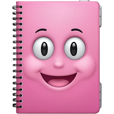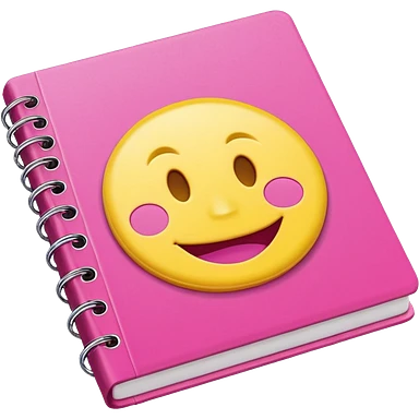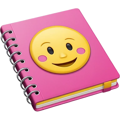 libreta de anillos rosada en perspectiva isometrica con sticker de carita feliz amarilla, con aspecto de emoji de apple emoji