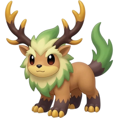 Exotic tropical Animal-Fakémon-Pokémon-hybrid-fusion-creature with thick fur, short legs, big paws, and antlers on head emoji