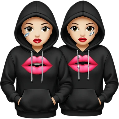 Realistic Isolated pair of black hoodie with baddie lips print on front with rhinestones emoji