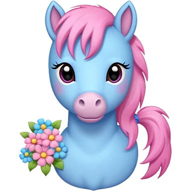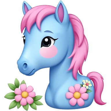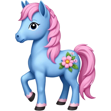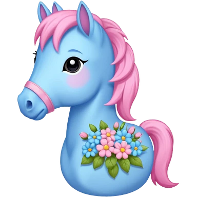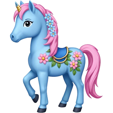 Blonde, pale skin, blue eyes girl wearing a pink dress holding her pony stuffed animal. emoji
