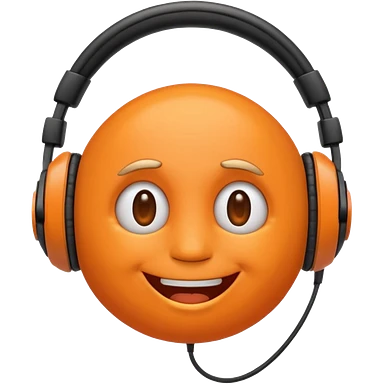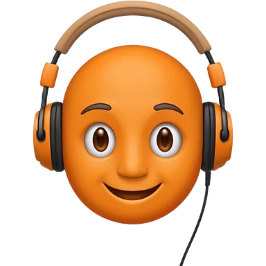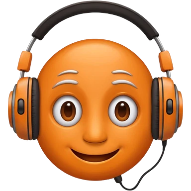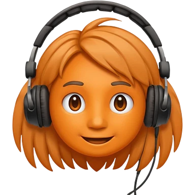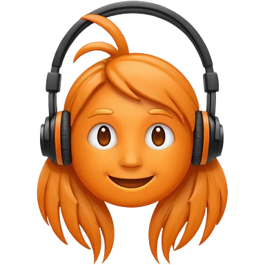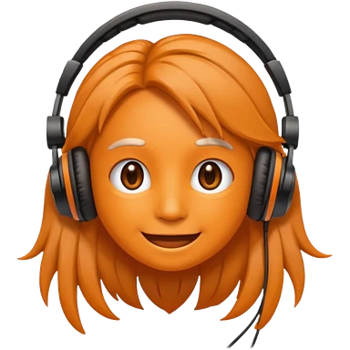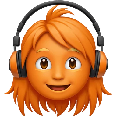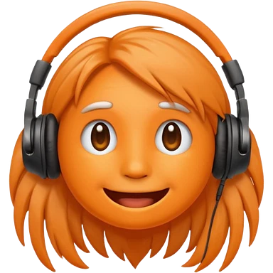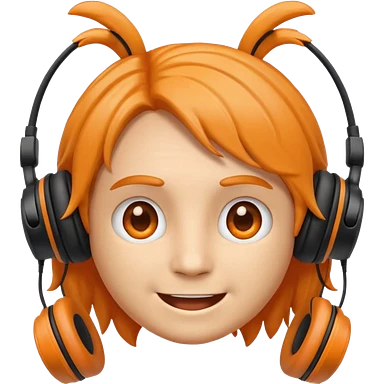 Orange happy face emoji with a couple of hair,headphones,and antennas. emoji