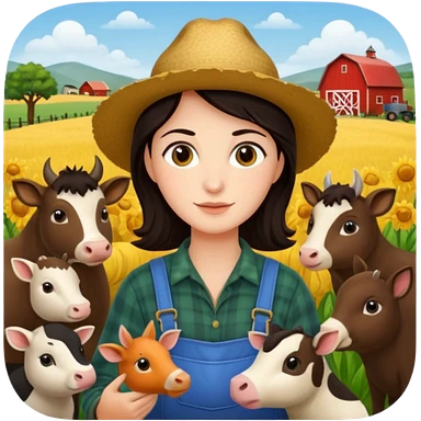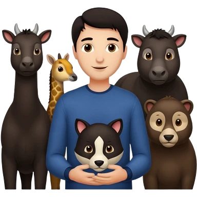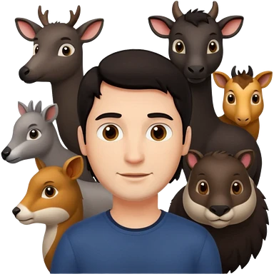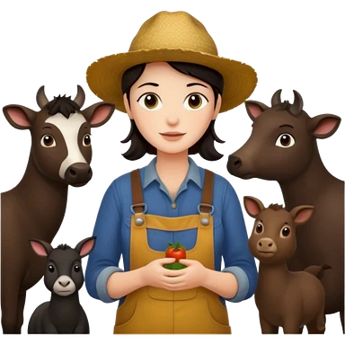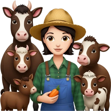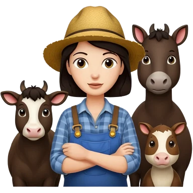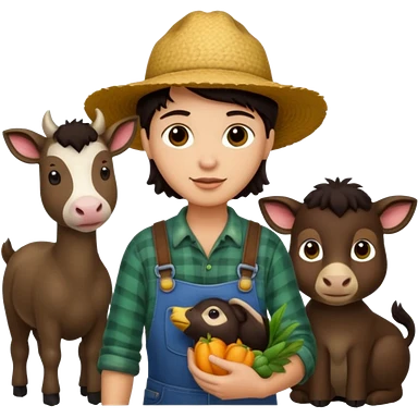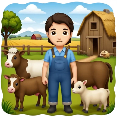 GRANJERO PIEL CLARA Y PELO OSCURO CON ANIMALES A SU ALREDEDOR emoji
