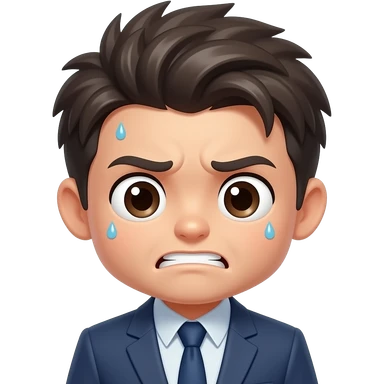 Create a looped animated emoji of a stressed office worker (CLT style). Style: - chibi cartoon - dark humor - expressive face - messy hair Animation: - sweating - head shaking slightly - loop seamless Background: - transparent Format: - webp animated - 512x512 emoji