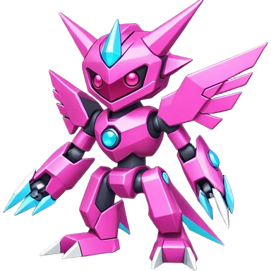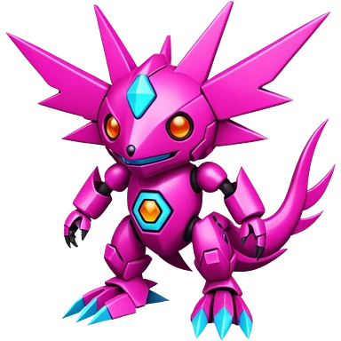 Digital Neon-Magenta Pixel-Fragmented Glitch-Lined Vivid Protogen-Rotom-Digimon fusion creature (full body) emoji
