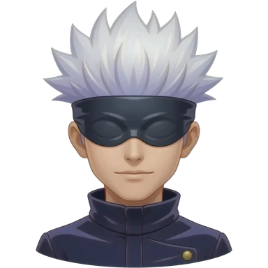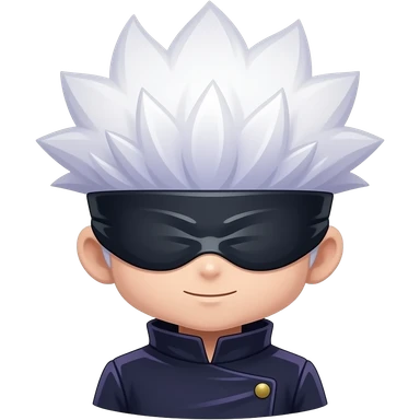 anime character named Saturo Gojo that has white hair, glasses, blue eyes, and wears purple clothing emoji | AI Emoji Generator