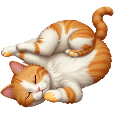 ginger and white small cat eyes closed lying down upside down with paws stretched out in different directions emoji