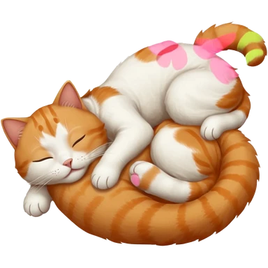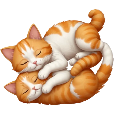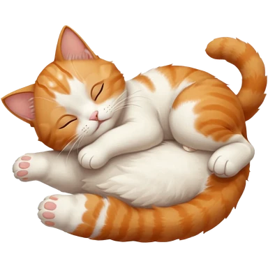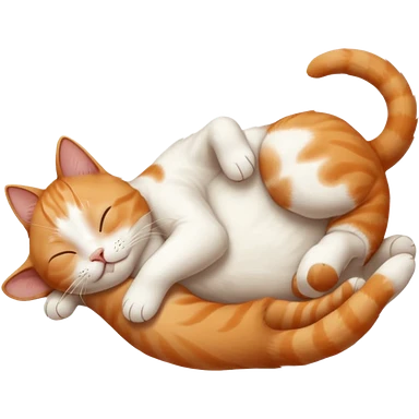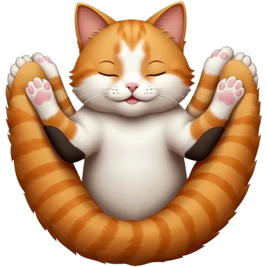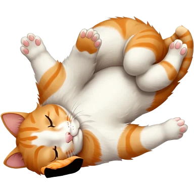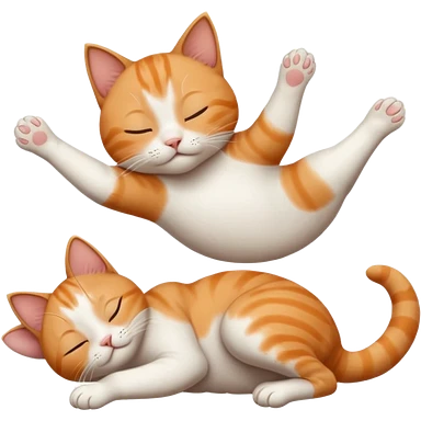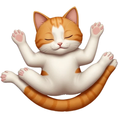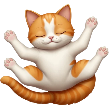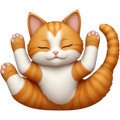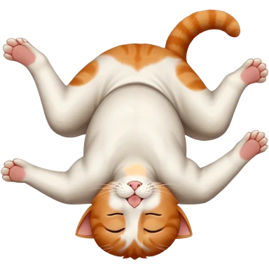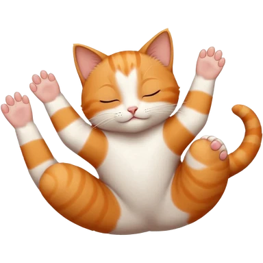 ginger and white small cat eyes closed lying down upside down with paws stretched out in different directions emoji