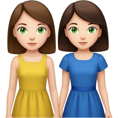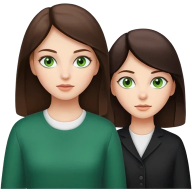 A brunette sister with green eyes and a brunette sister with green eyes in different clothes emoji