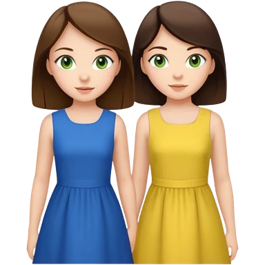 A brunette sister with green eyes and a brunette sister with green eyes in different clothes standing happily emoji