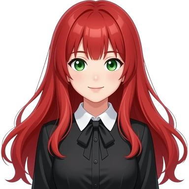 anime girl releived long red hair green eyes black blouse with white collar emoji