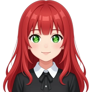 anime girl stars in her eyes long red hair green eyes black blouse with white collar emoji