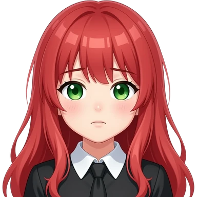 anime girl releived long red hair green eyes black blouse with white collar emoji