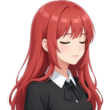 anime girl side eyes closed long red hair green eyes black blouse with white collar emoji