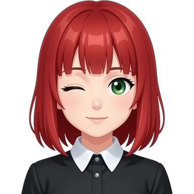 anime girl one eye raised red hair green eyes black blouse with white collar emoji