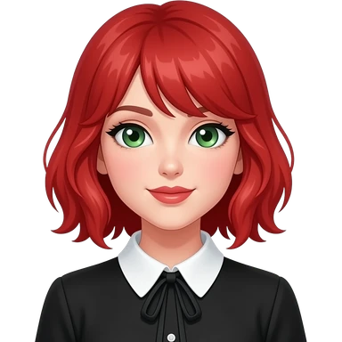 anime girl, taylor swift, red hair, green eyes, black blouse with white collar emoji