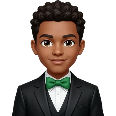 afro boy wear black coat and green bow tie half body close up emoji