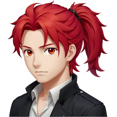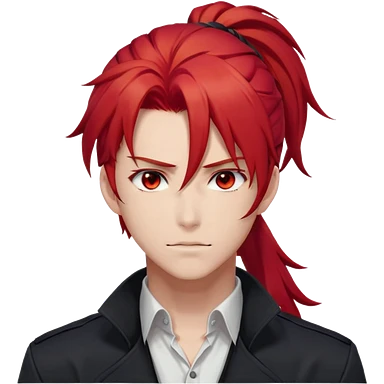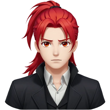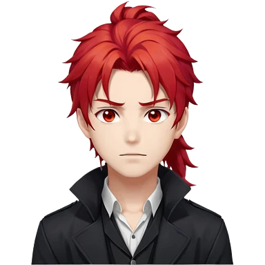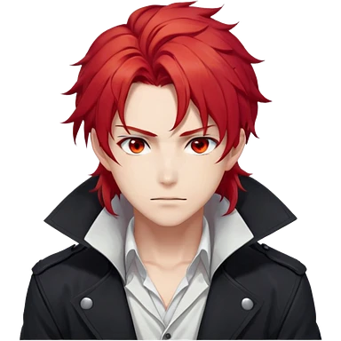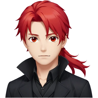 anime man with long-straight-dark-black hair, long black fox ears with pink Scapha, colorful-gradient-brown-turquoise eyes, gold earring, dark-blue-sweater, green cape, white pupils emoji | AI Emoji Generator