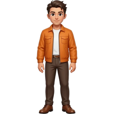 Anime men brown skin orange jacket and brown pants and brown dress shoes brown hair emoji