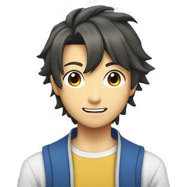 avatar in a cartoon or digital art style, representing a male character with short, modern black hair, a short beard, defined eyebrows, large expressive eyes, and wearing a purple shirt. The style resembles anime or cartoon illustrations. emoji