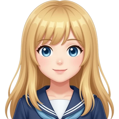 Energetic anime girl with short blonde hair wearing Japanese sailor style school uniform, winking and making double peace signs, very cheerful and bubbly, kawaii style emoji