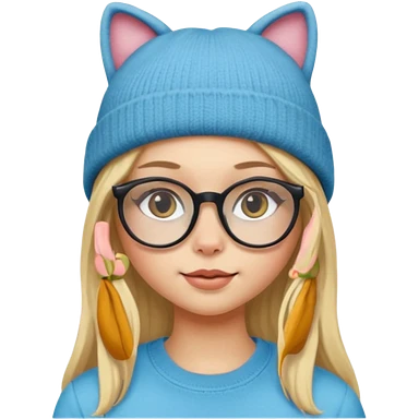 Blonde girl wearing cat glasses and beanie, long hair emoji