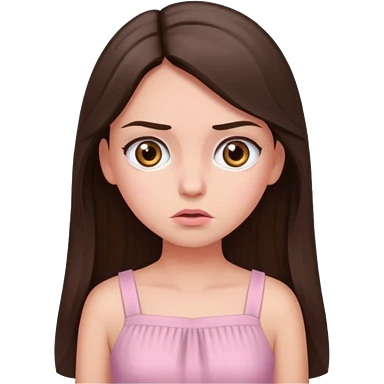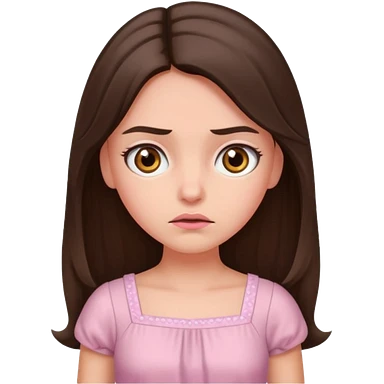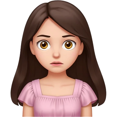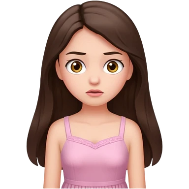 annoyed long brunette hair girl with hazel eyes wearing light pink dress emoji