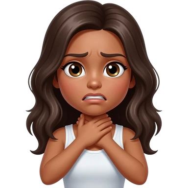 Annoyed Medium skin girl Choking self with hands around neck emoji