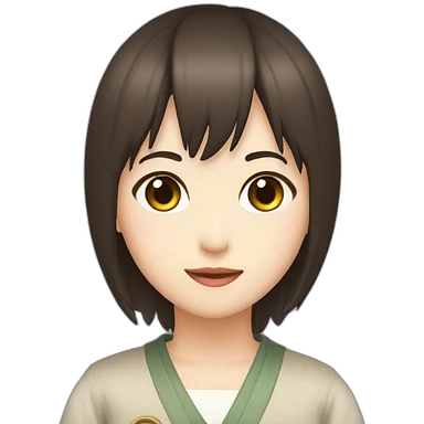 mujer blanca con pelo castaño claro y rulos en la punta del pelo con ojos marrones anreojos y una camisa marron claro emoji