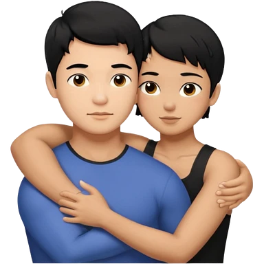 buff Asian Man black hair hugging girl with black pixie cut emoji