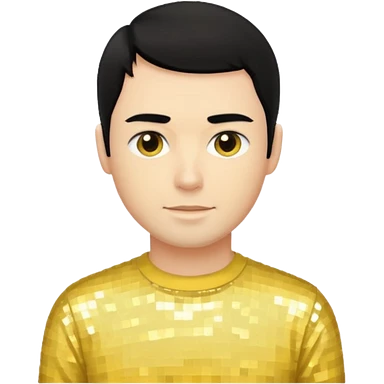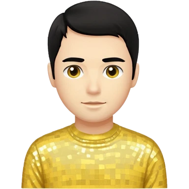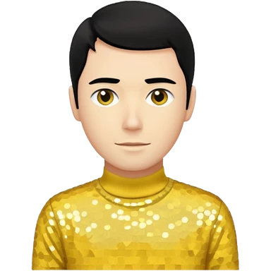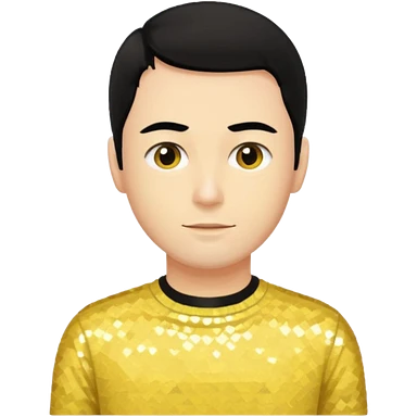 Greg Page from The Wiggles with black hair, yellow sequin skivvy shirt emoji