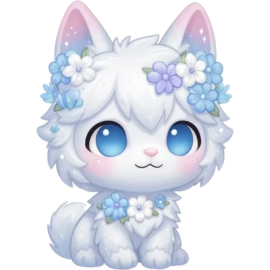 Anthro Cute Cool Kawaii gorgeous sparkly ethereal white fantasy animal creature with blue eyes furry sona with flowers beautiful aesthetic emoji