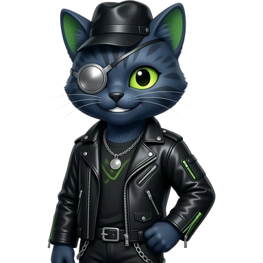 Edgy Beautiful Cool Anthro dark cat-fursona punk techwear fiddler hat emoji