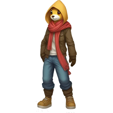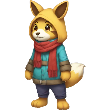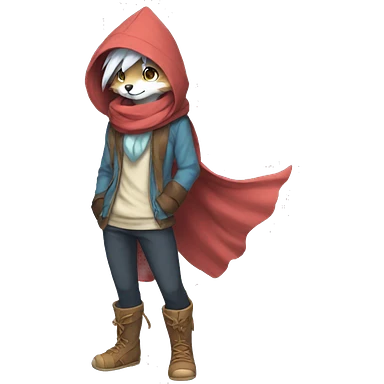 Anthro Sona Fakemon with a scarf and a hood Full Body emoji