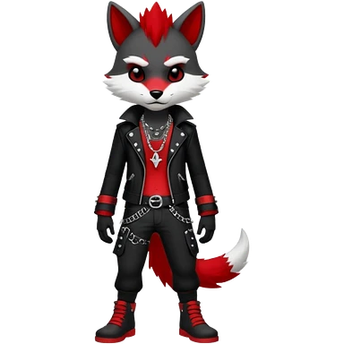 Anthropomorphic Anthro Furry punky gothic black white and red badass cool stylish handsome smexy Animal-furry-fursona emoji | AI Emoji Generator